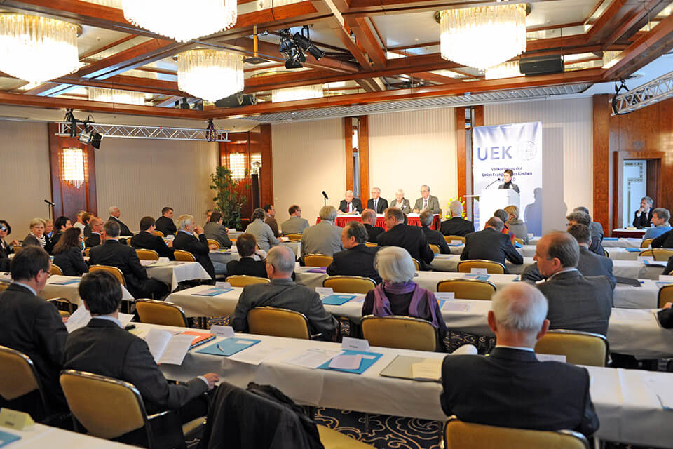 Vollkonferenz 2010 UEK Vollkonferenz in Hannover © epd-bild / Norbert Neetz Die Vollkonferenz fand vom 9.–10. November 2010 in Hannover statt. Protokoll und Redebeiträge stehen Ihnen als Downloads zur Verfügung. Downloads & Links Bericht des Präsidiums 2010 3. Tagung der 2. Vollkonferenz am 9.–10. November 2010 in Hannover PDF 306,66 KB Plädoyer für weitergehende Integration UEK-Vorsitender Landesbischof Fischer zur Zusammenarbeit der gliedkirchlichen Zusammenschlüsse in der EKD PDF 104,23 KB Michael Beintker: Mit Gott reden – von Gott reden Das Personsein des dreieinigen Gottes PDF 39,99 KB Theologisch auskunftsfähig werden Vollkonferenz begrüßt Votum zum Personsein Gottes PDF 43,83 KB